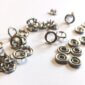 Jeśli przyjrzymy się wierzchowi zatrzasku przed montażem zobaczymy, ze wyraźnie dzieli się na dwie części. Górna decyduje o estetyce, o efekcie wizualnym na końcowym produkcie. Jest ona najczęściej powleczona metalem (np. znal), tworzywem sztucznym, często metalem galwanizowanym lub lakierowanym. Druga część wierzchu to ta, która decyduje o montażu i na końcowym produkcie pozostaje niewidoczna. Nazywamy ją lejkiem (w przypadku zapięć typu R-spring i S-spring) albo ząbkami (w przypadku zapięć typu spring). Jej długość jest wyznacznikiem wysokości wierzchu.